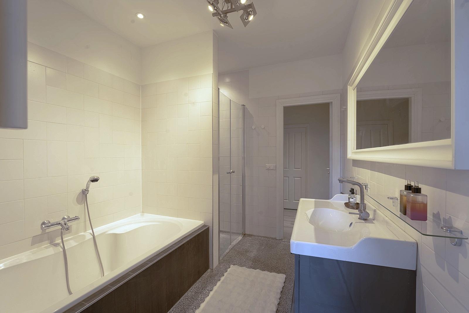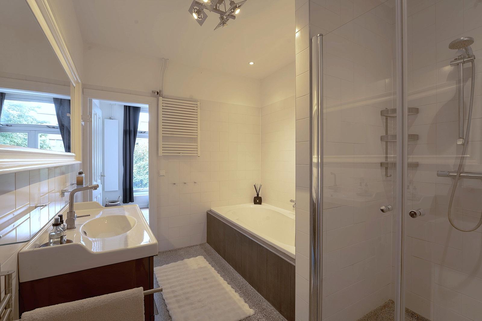 It is equipped with double facilities: living room, bathroom, kitchen (connection) and bedroom(s) can be found both on the upper floors and on the ground floor. And you can enjoy the sun on both levels: on the roof terrace as well as down at street level.